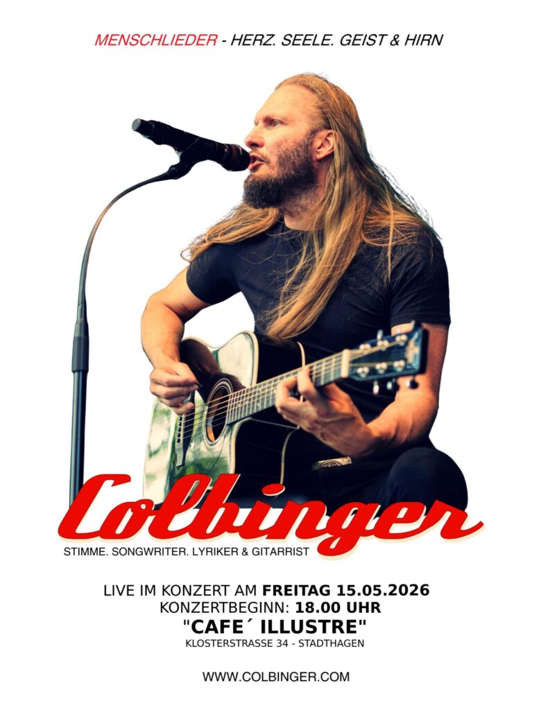 COLBINGER, der Allrounder, Singer-Songwriter, Lyriker & Gitarrist präsentiert authentisch mit markanter Stimme und kraftvollem Gitarrensound
